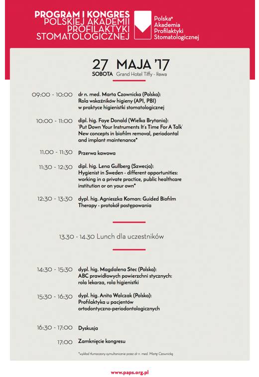 Celem Kongresu PAPS jest zapewnienie przestrzeni do edukacji, integracji oraz wymiany doświadczeń pomiędzy specjalistami. Doroczny, ogólnopolski Kongres jest jednym z filarów programu wspierania rozwoju zawodowego higienistek stomatologicznych. Polska Akademia Profilaktyki Stomatologicznej przygotowała także kompleksowy cykl edukacji uzupełniającej, oparty na światowych standardach pracy z pacjentem oraz modelach współpracy lekarza z higienistką.