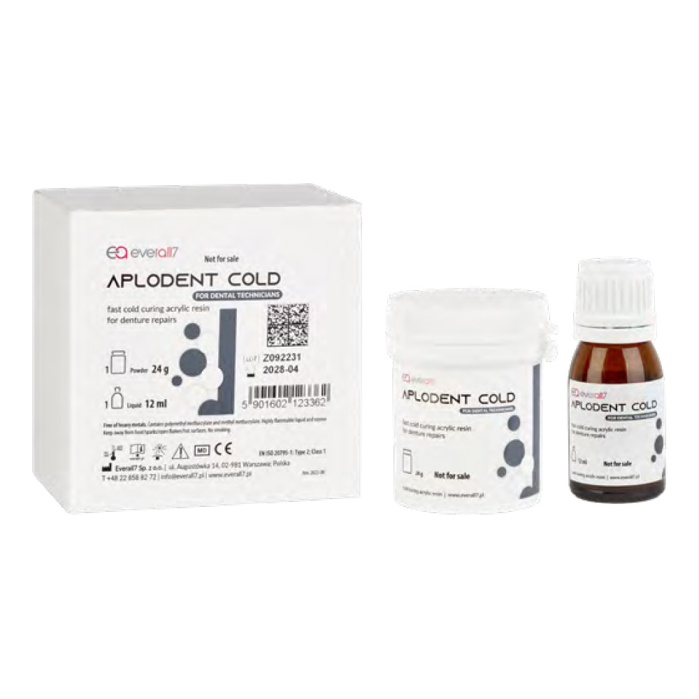 Aplodent Cold to tworzywo akrylowe chłodnej polimeryzacji przeznaczone do wykonywania napraw ruchomych protez całkowitych, częściowych, akrylowych części protez szkieletowych oraz akrylowych aparatów ortodontycznych.