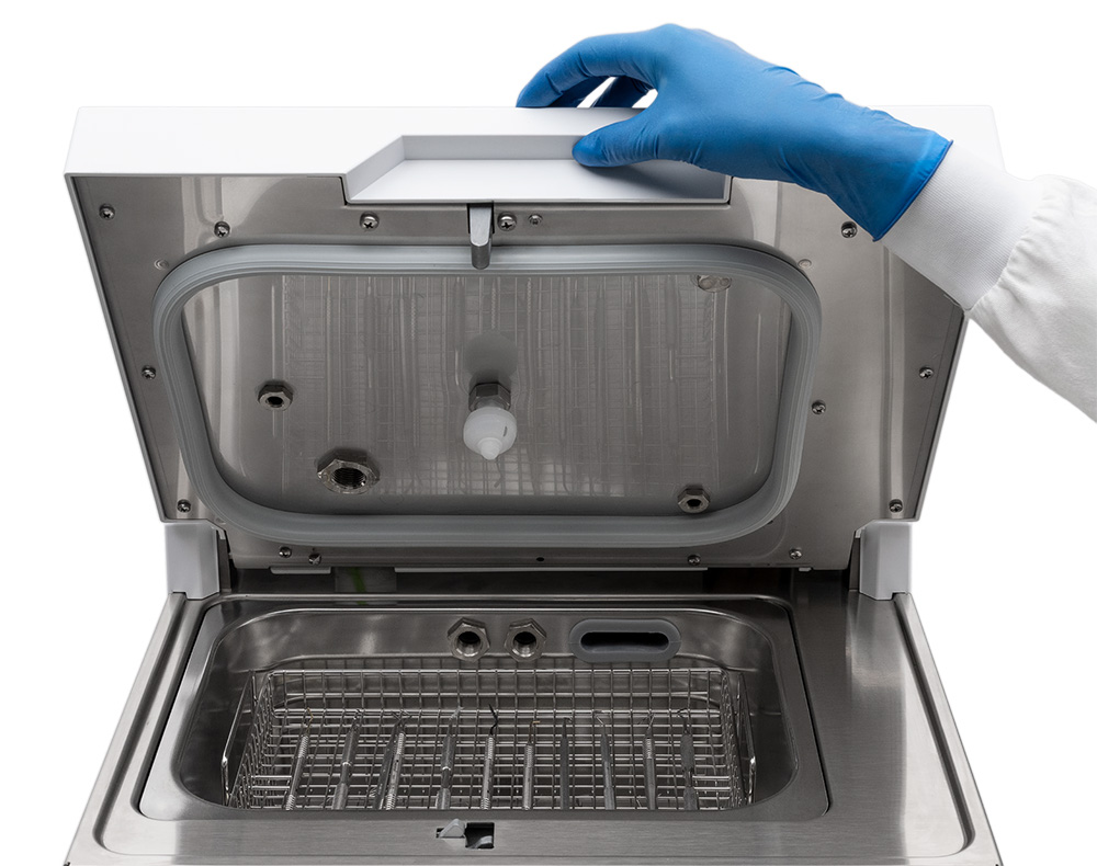 - Dzięki komorze myjącej o pojemności 10 litrów może pomieścić aż jeden pełny wsad z autoklawu o pojemności 24 litrów.
