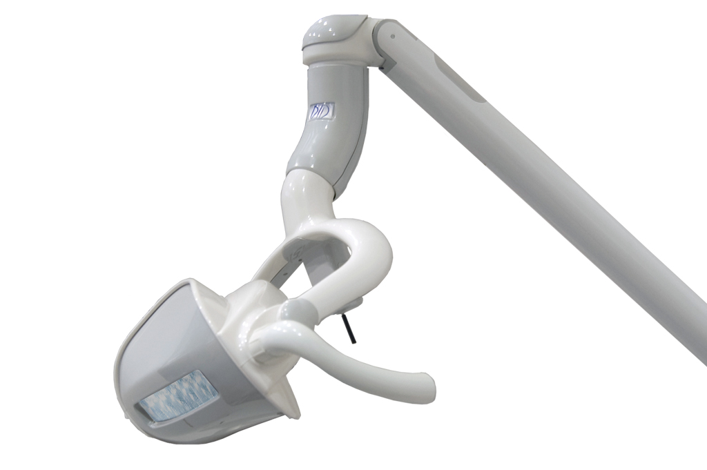 Lampa Did Dental LED z regulacją natężenia światła na ramieniu pantograficznym.